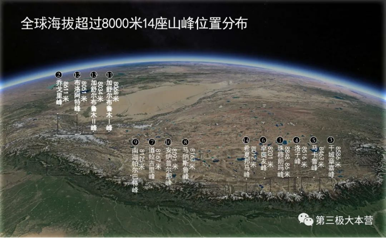 全球海拔超过8000米的14座山峰,图源:第二次青藏科考队