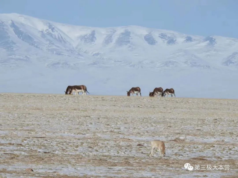 (“雪山脚下觅食的藏野驴。图片©第二次青藏科考队)▼